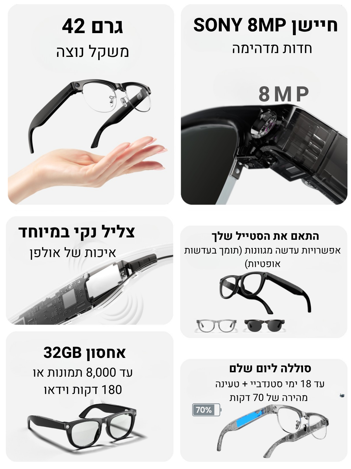 GPT מובנה במשקפיים – קבל תשובות, רעיונות ותרגומים בזמן אמת, בלי להוציא את הטלפון.