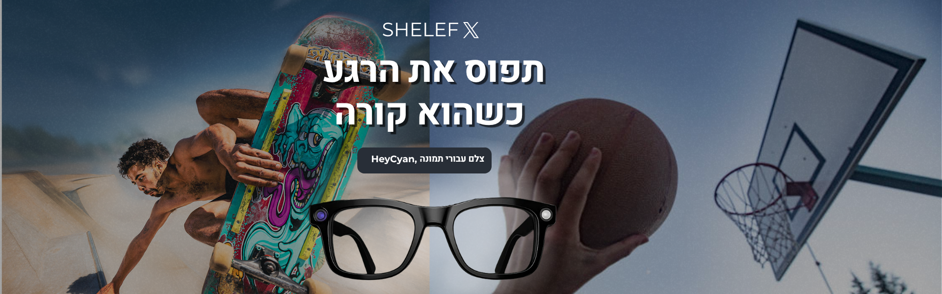 משקפי SHELEF X, כבל טעינה מגנטי, מטלית ניקוי, קייס ומדריך משתמש.