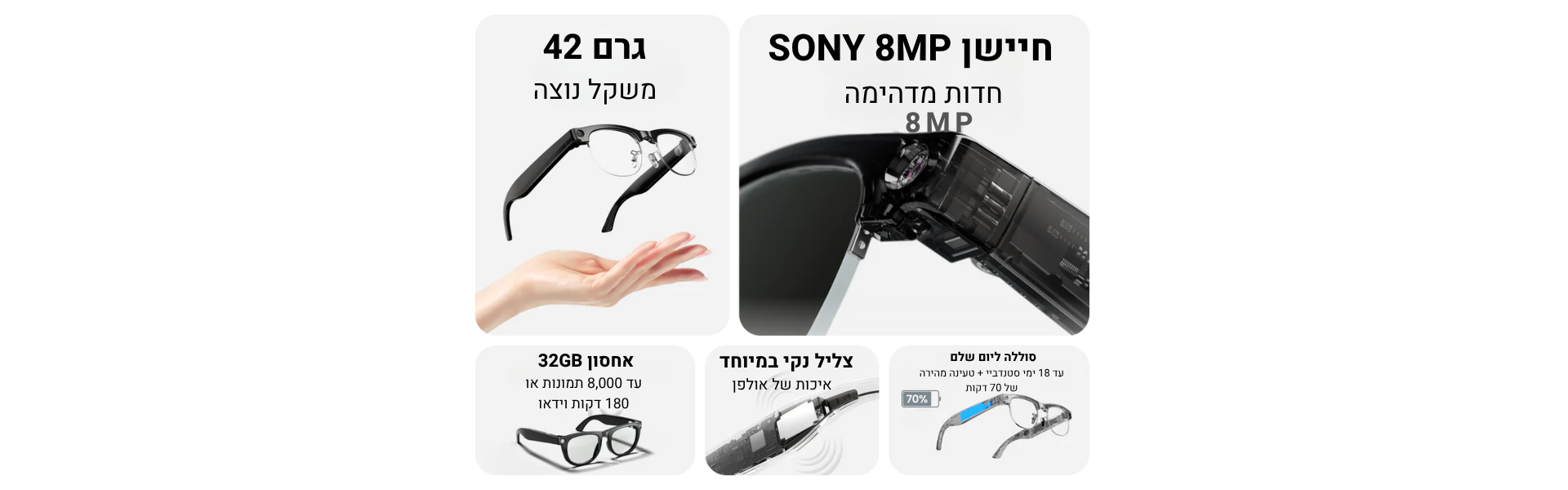 סוללה עוצמתית לשימוש יומיומי – עד 8 שעות מוזיקה ושיחות או 3 שעות צילום רצוף, עם טעינה מהירה של כ־70 דקות בלבד.
